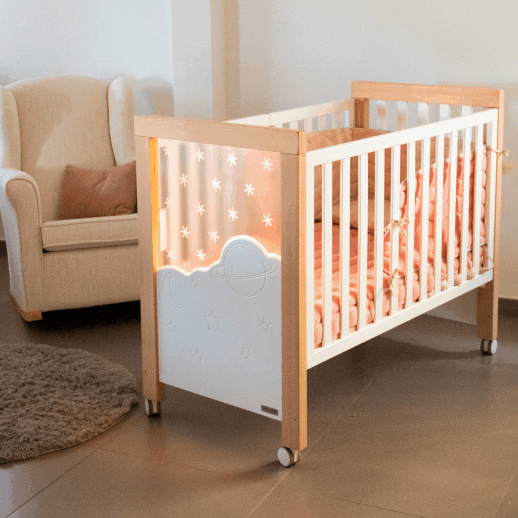 En Micuna sabemos lo importante que es cuidar del sueño de tu bebé. Por eso, hemos diseñado la cuna Dolce Magic, un modelo de 120x60cm que, además de su diseño evolutivo y funcional, incorpora un delicado panel luminoso de tono cálido en forma de estrellas en uno de sus cabezales.