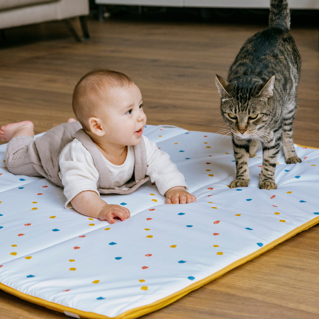- Crea una zona libre de obstáculos donde el bebé pueda moverse con libertad, probando a colocar alfombras en el suelo y juguetes adaptados a su edad.