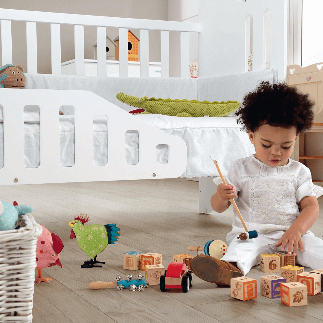 Esto quiere decir que muchas de nuestras cunas se transforman en cama infantil o escritorio, acompañando a tu peque mientras crece. Lo que las convierte en una inversión práctica, duradera y sostenible.