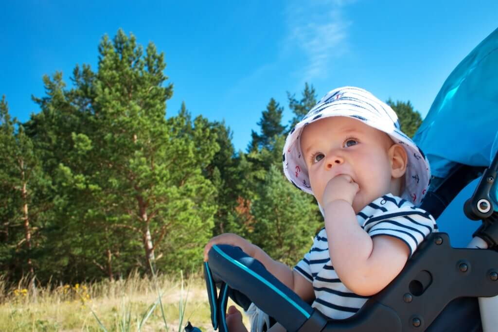 2. Protege a tu bebé del sol: En tus paseos, o cuando estés al aire libre, es recomendable usar una sombrilla, un sombrero de ala ancha o un parasol acoplable al cochecito o al portabebés.