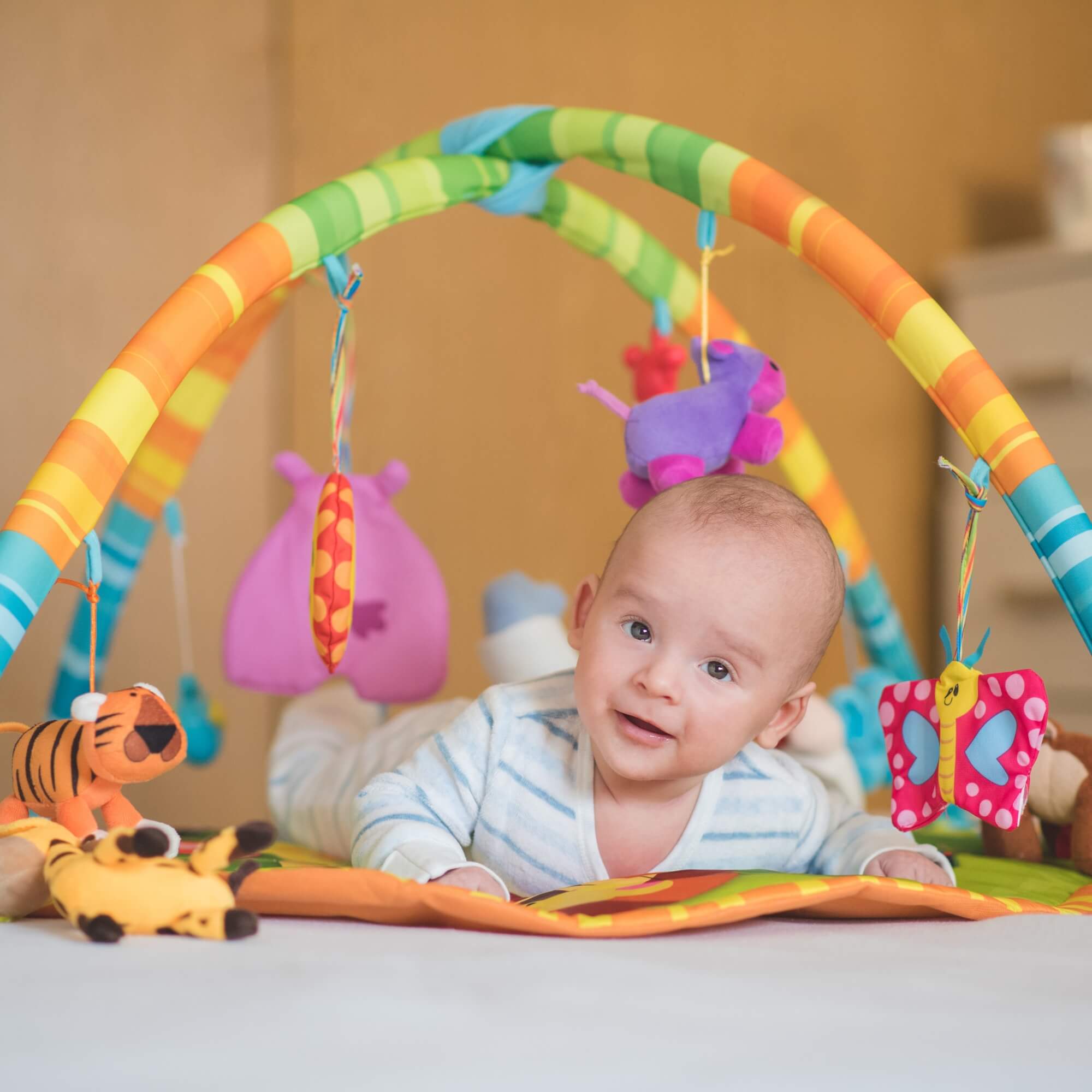 Los gimnasios de juegos son especialmente beneficiosos para los bebés, especialmente cuando son conscientes de que son ellos quienes dirigen sus manos y que son capaces de tocar y hacer que se muevan esas cosas tan divertidas que están justo encima suyo. Pero además de estimular su movimiento de piernas y brazos, mejora la motricidad y estimula su curiosidad por el mundo que les rodea.
