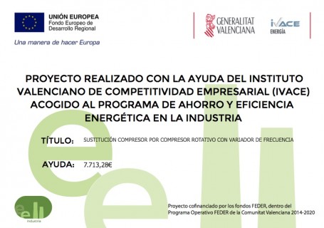En concreto una de las actuaciones que se ha llevado a cabo es la adquisición e instalación de un Compresor de Tornillo refrigerado por aire con regulación de frecuencia, con funcionamiento automático y certificado CE. Este compresor ha sustituido a uno de velocidad fija, con el objetivo de buscar el modo más rentable de generar aire comprimido variable. El aire comprimido es una de las energías auxiliares más importantes en la industria del mueble. Los compresores de tornillo son la mejor elección para una demanda continuada de aire comprimido.