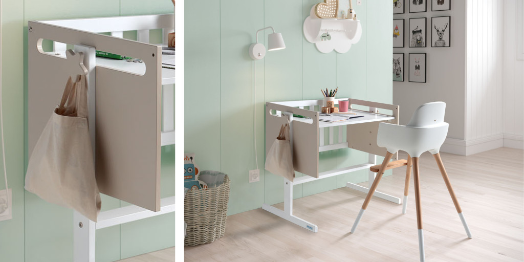5. ESCRITORIO: Otra opción será transformar tu minicuna en un pequeño escritorio, en el que el niño hará sus primeros dibujos. Podrás regularlo a su altura y además, utilizar su estrellita del lateral como colgador.