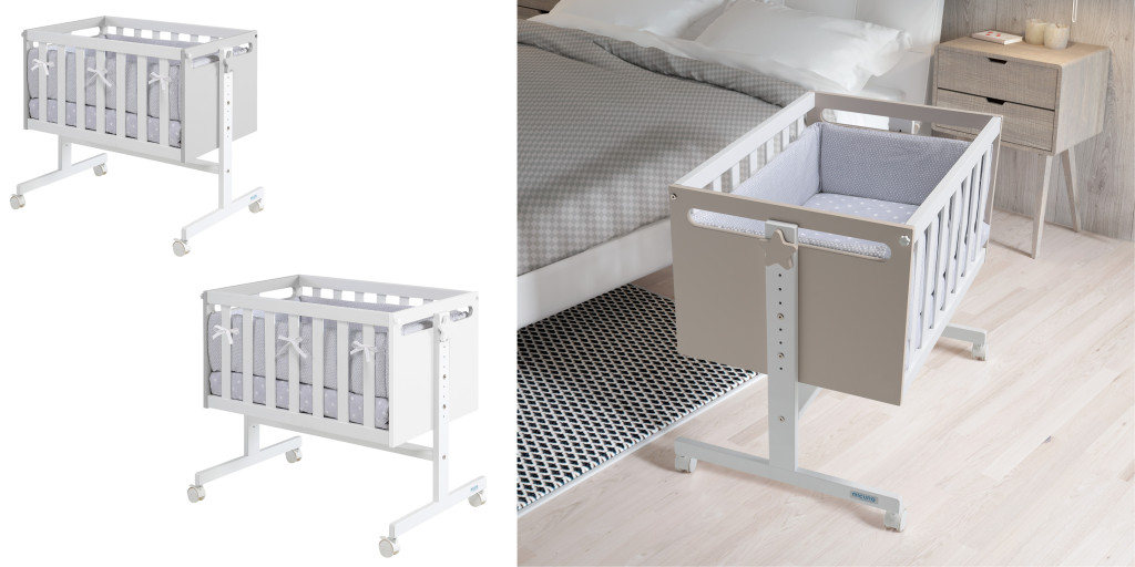 Además, la minicuna está disponible en 3 combinaciones de color, para que elijas la que más se adapte al ambiente de la habitación del bebe: blanco, arena y gris.