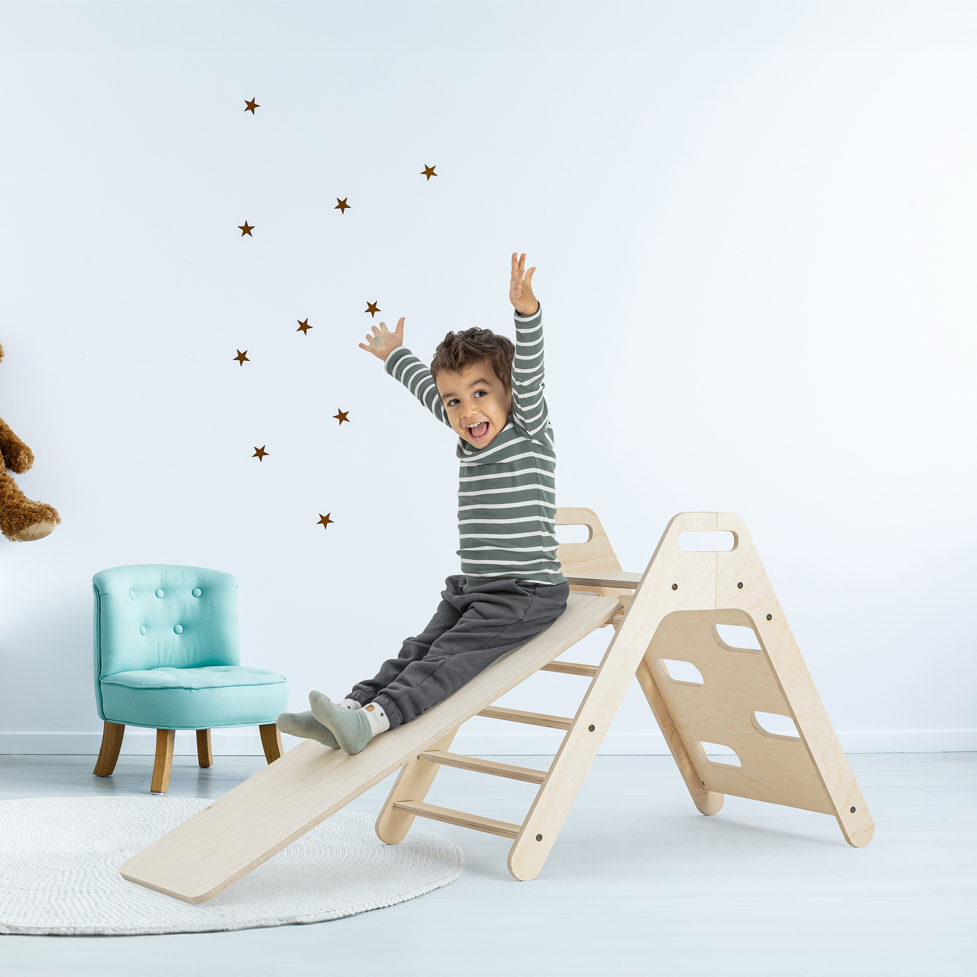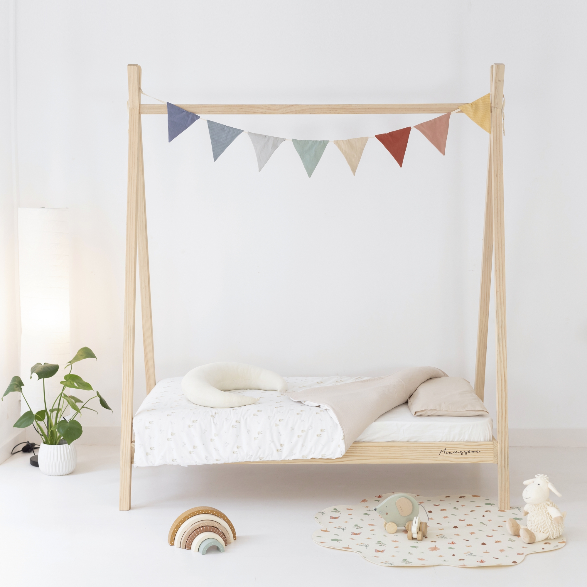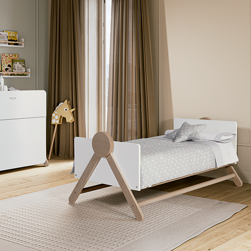 Una vez el pequeño comience a tener autonomía y quiera dormir “como los mayores” puedes incorporarle la barrera Micussori para usarla como camita.