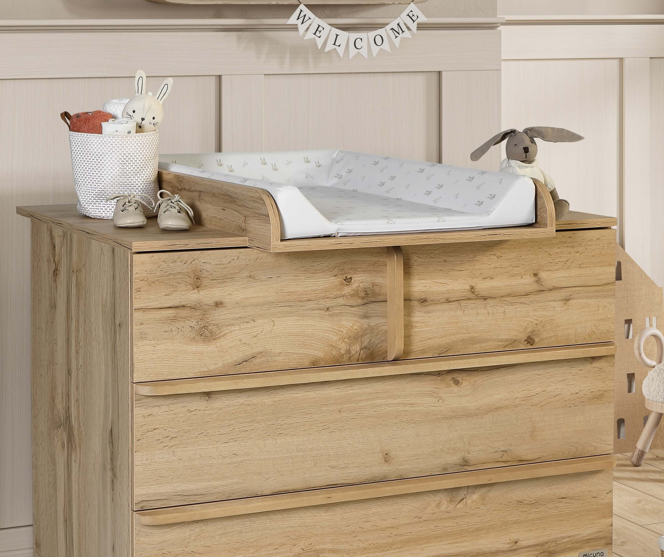 Inspirada en un estilo natural y fabricada con maderas procedentes de bosques sostenibles, la colección Martha está compuesta por cuna, armario, bañera y cómoda a la que le puedes añadir su Cambiador bebé Martha.