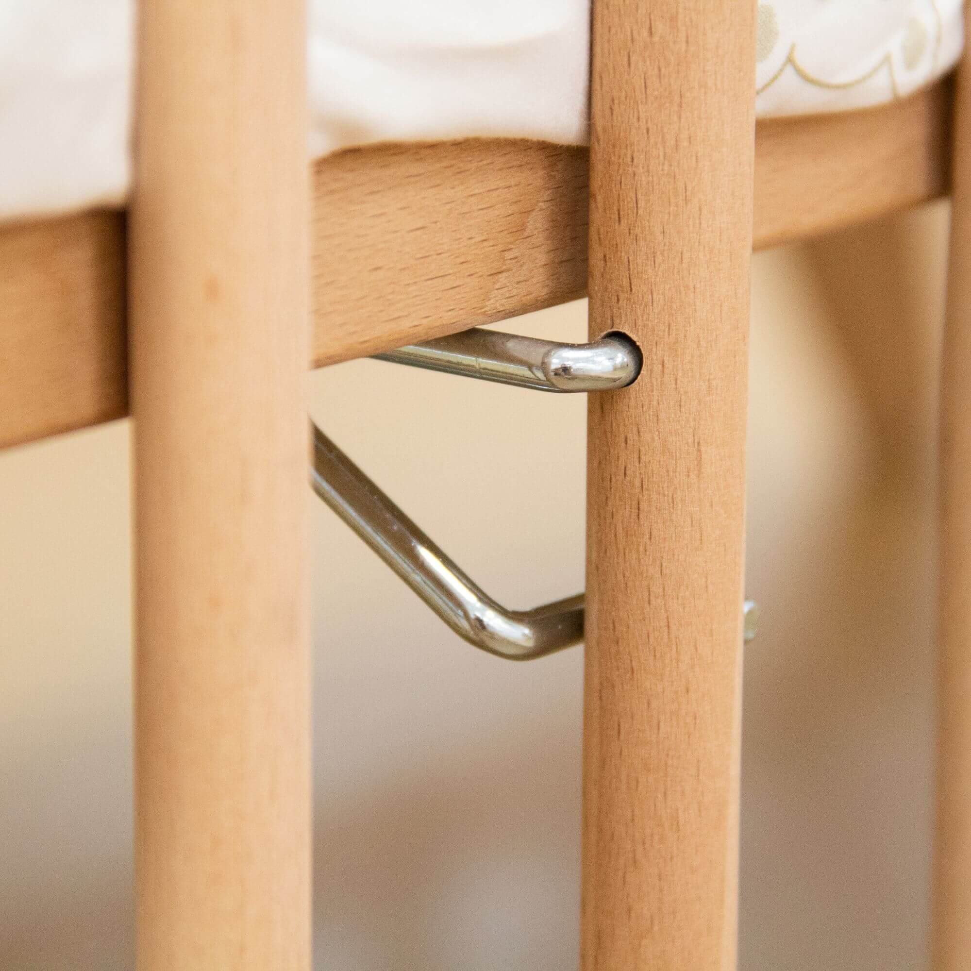 Por la noche, una robusta cuna de madera de haya y por el dÃa…podrás plegarla de forma muy sencilla y aprovechar todo el espacio de la estancia.
