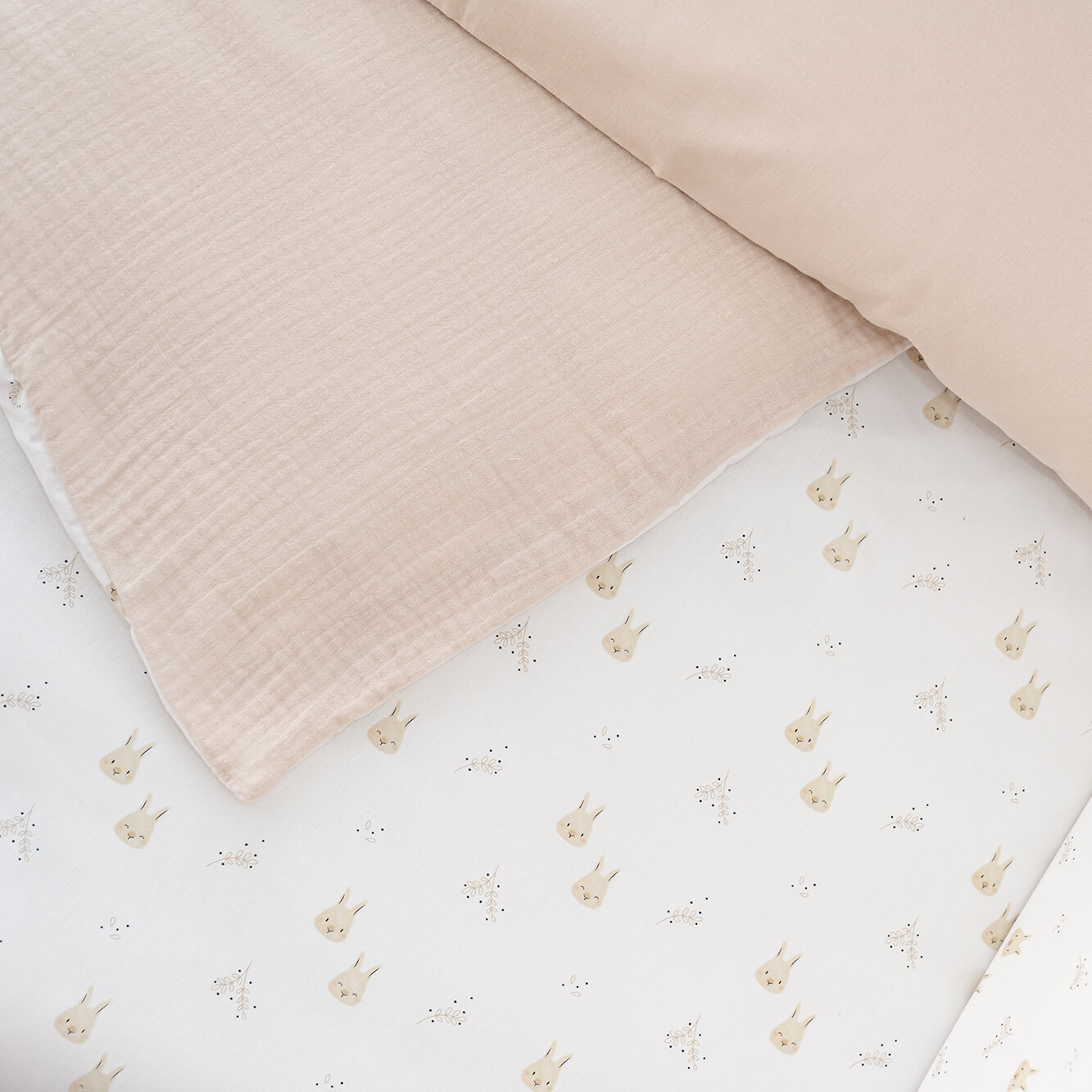 El nuevo textil Rabbits combinado con muselina, es perfecto para combinar con cualquiera de nuestras cunas o minicunas.Â