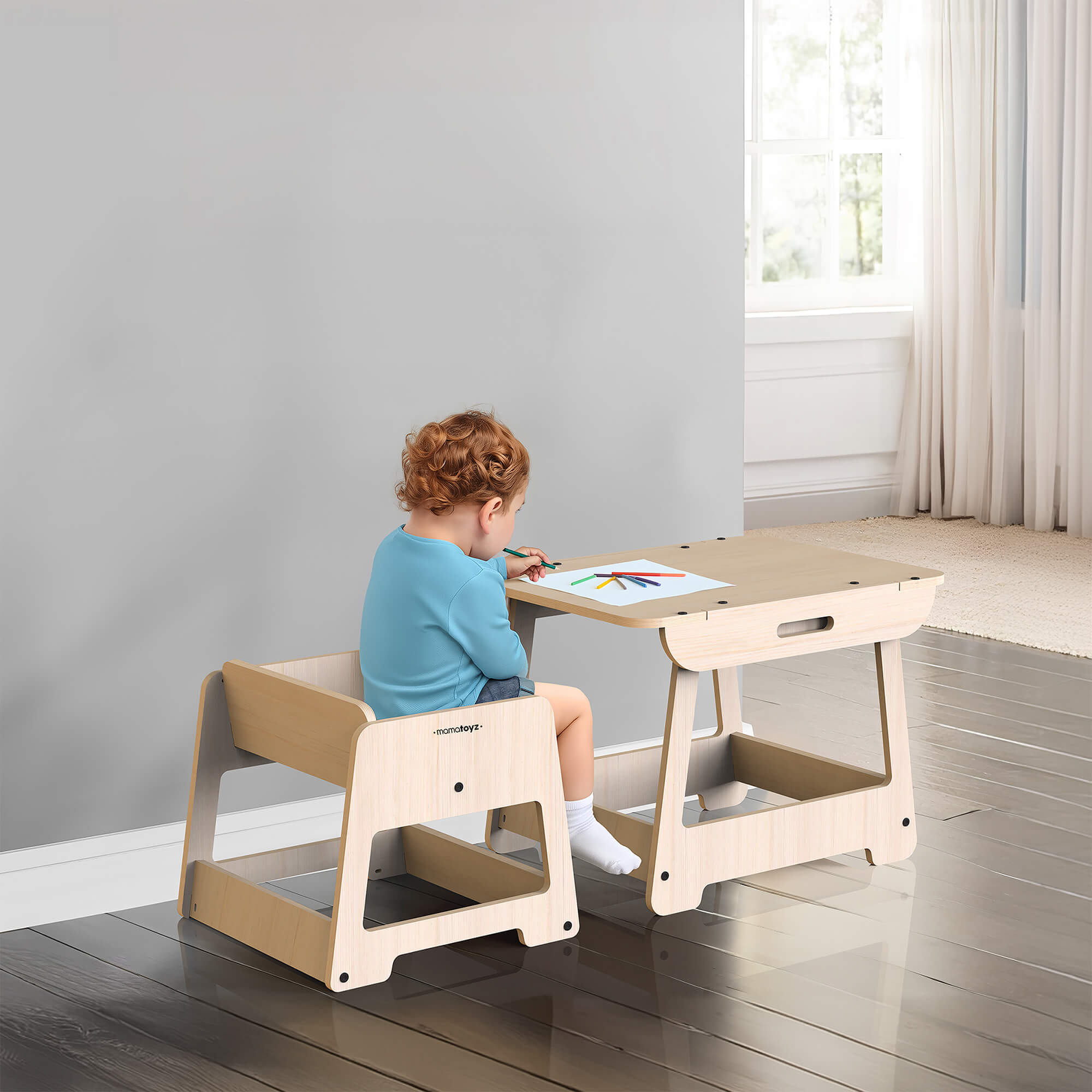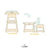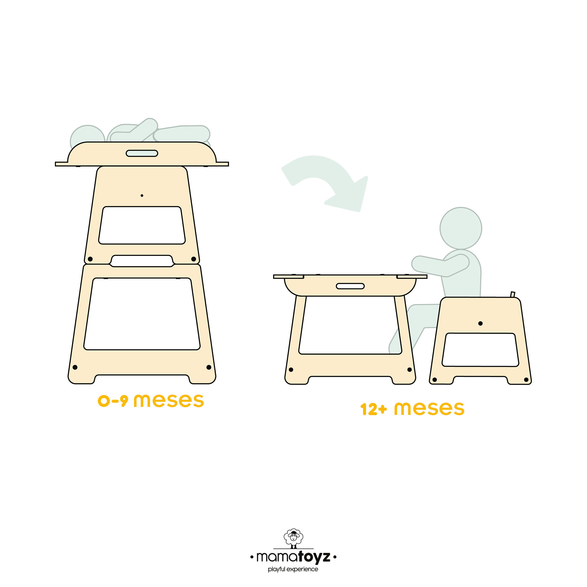 Cuando tu bebé crezca, el cambiador se transforma fácilmente en una práctica mesa y silla para juegos, manualidades o lectura.