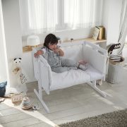 Características: Convertible en minicuna, colecho, juguetero, escritorio y sofá / Regulable en 7 alturas / Lateral desmontable / 4 ruedas con freno / Incluye correas anclaje cama y colchoneta / Peso máximo soportado: 14 kg.