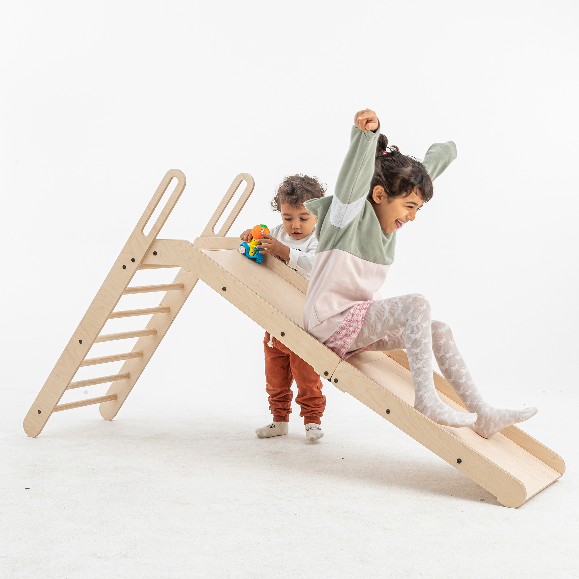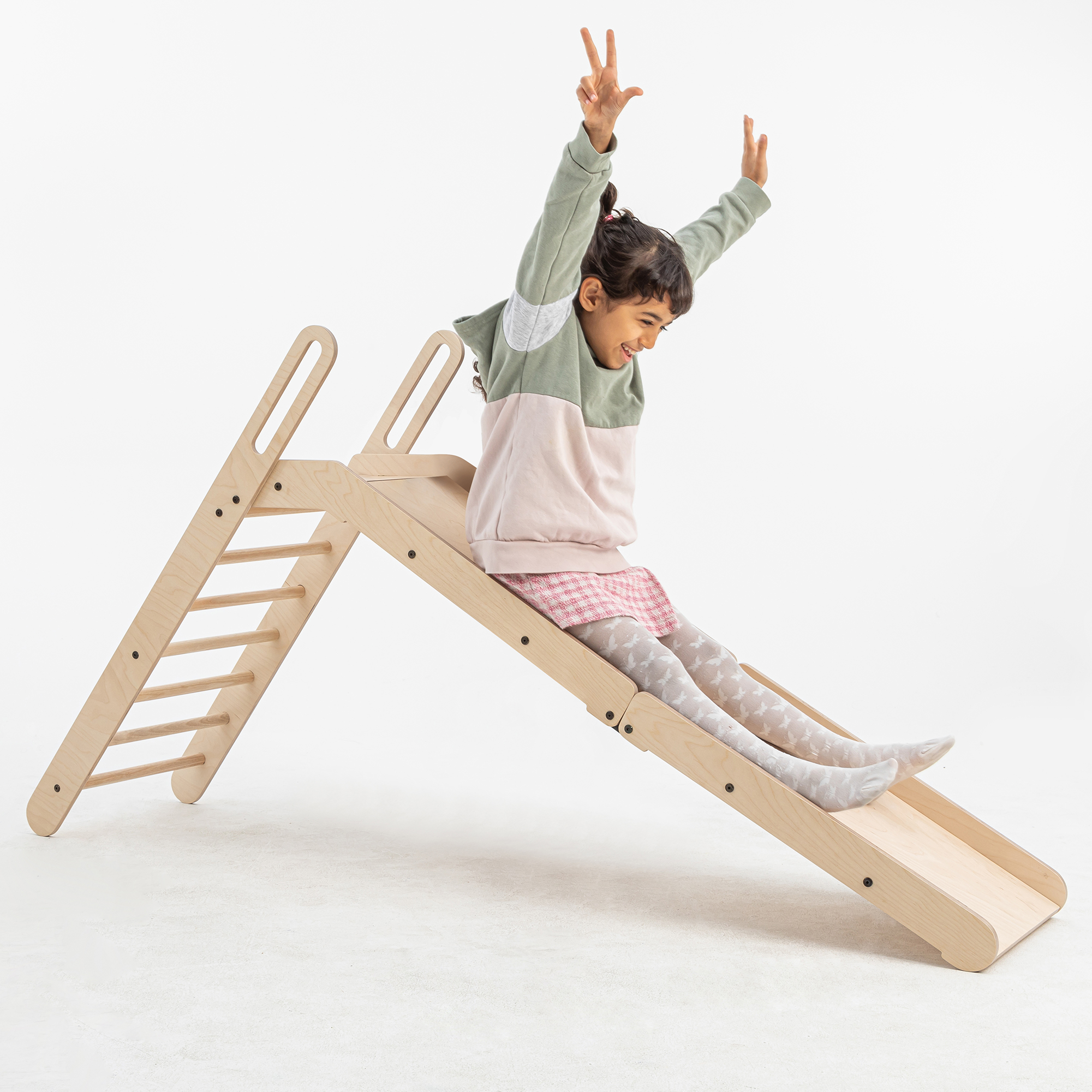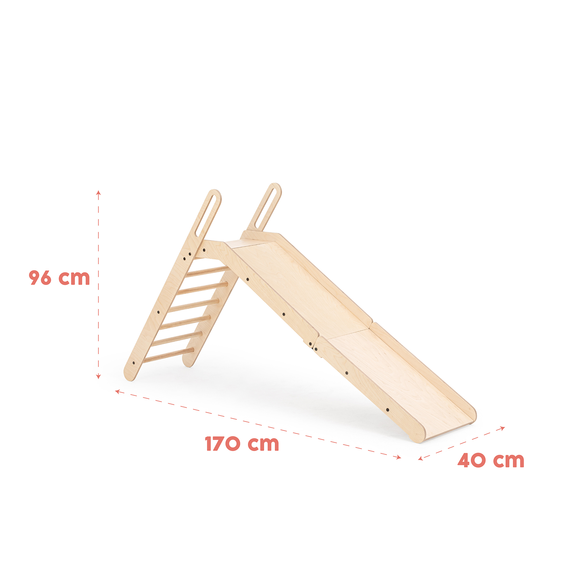 Convierte cualquier espacio en una zona de juegos con este tobogán plegable de madera, diseñado para integrarse fácilmente en habitaciones infantiles, salones o áreas exteriores. Su diseño funcional y estético combina diversión y practicidad: se pliega en segundos, permitiendo transportarlo y almacenarlo sin esfuerzo.