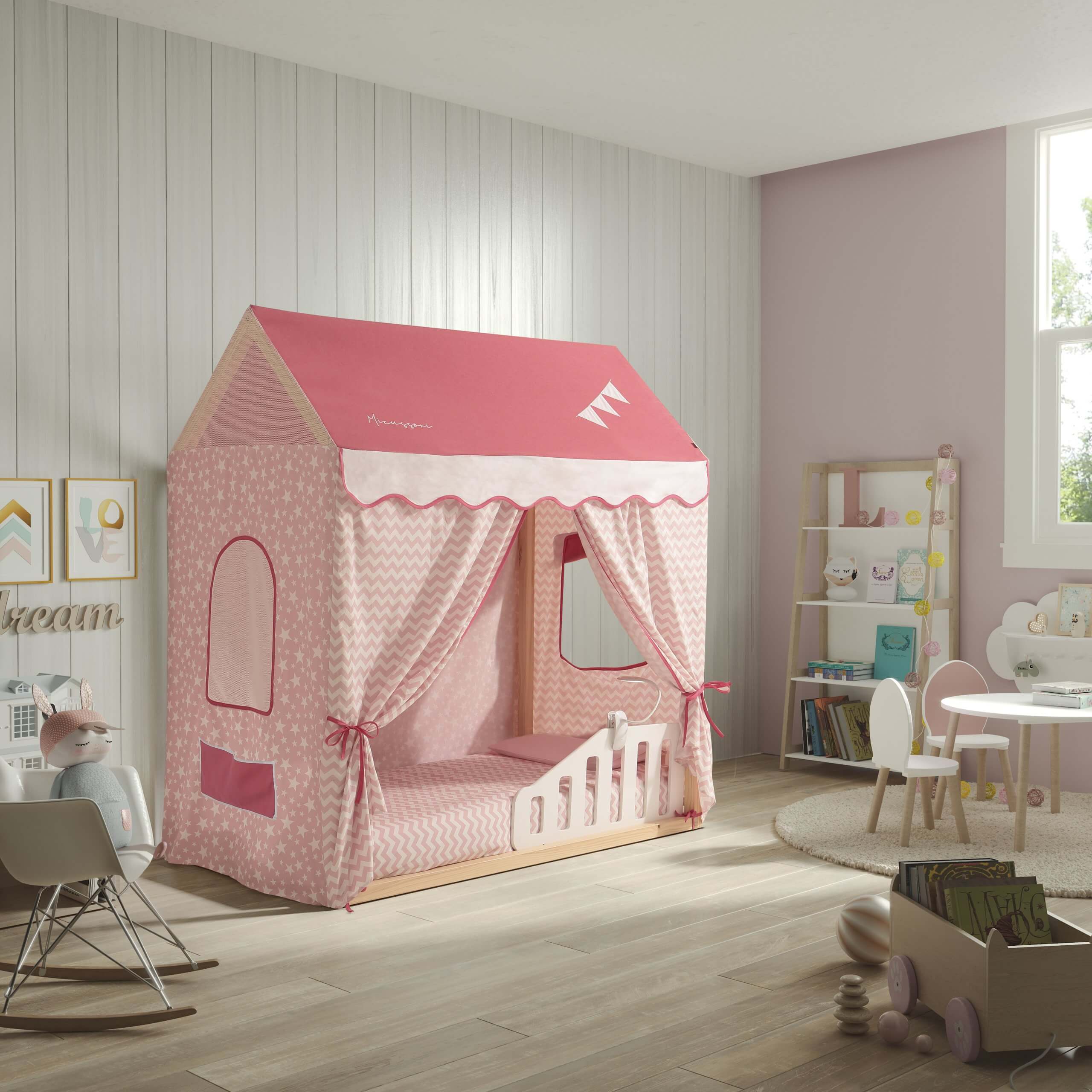 Con unas medidas de 140×70 cm, es ideal como primera cama tras la cuna, y cuenta con una base de somier elevada que aÃsla el colchón del suelo, mejorando la ventilación y el confort. Su estructura en forma de casita convierte el espacio de descanso en un entorno acogedor, cálido y estimulante.